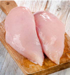- Generously salt and pepper the skin side of the chicken breasts.